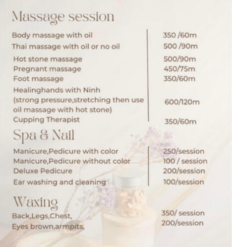 Hi! My name is Ninh, I’m professional therapist with 8 year experience work in Spa. Offering high-quality in-home massage and spa services in Hoi An. I speak English and always work with care and respect🌻